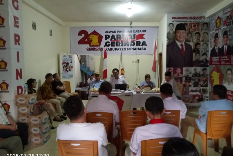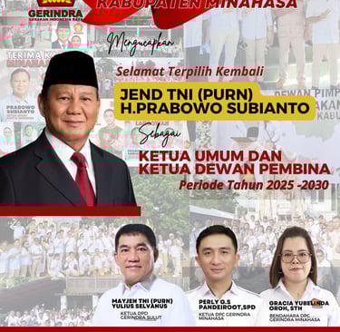 DPC Gerindra Minahasa dipimpin oleh Ketua a.n DPC Perly G.S. Pandeiroot, Sekretaris a.n Nova D. Senduk (R), dan Bendahara a.n Gracia Y. Oroh. Dalam struktur legislatif, partai ini memiliki 8 kursi anggota DPRD Kabupaten Minahasa untuk masa jabatan 2024-2029, yang menunjukkan peran aktif dan representasi politik Gerindra di daerah.