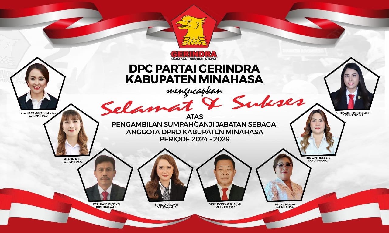 Pada Pemilihan Umum tahun 2024, Partai Gerindra Kabupaten Minahasa dapat memberikan kursi di DPRD Tingkat I Propinsi Sulawesi Utara, dan DPRD Tingkat II Kabupaten Minahasa. Adapun untuk perwakilan DPRD Tingkat I Sulawesi Utara masa Bhakti 2024-2029 mendapat jatah 1 Kursi Dapil Minahasa Tomohon, dan untuk DPRD Tingkat II Kabupaten Minahasa mendapatkan 8 Kursi anggota DPRD Minahasa masa bakti 2024-2029